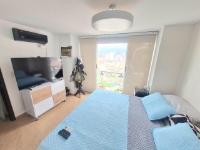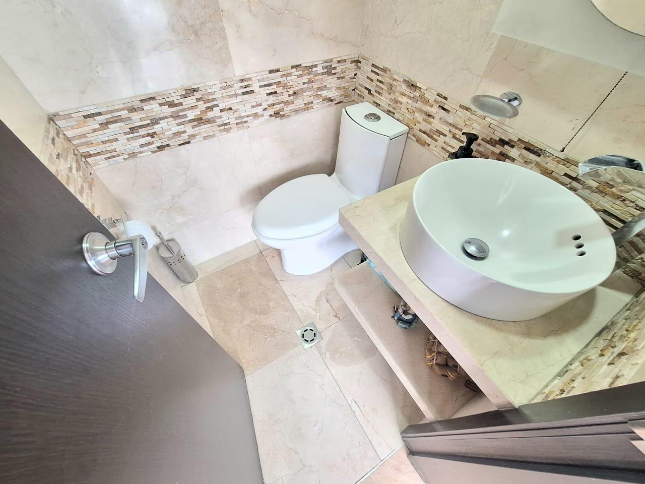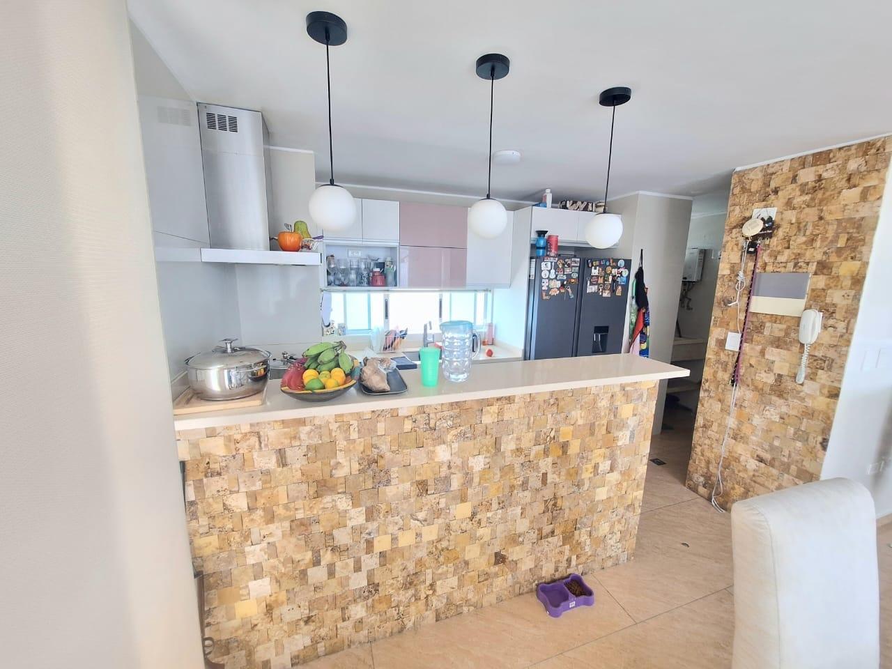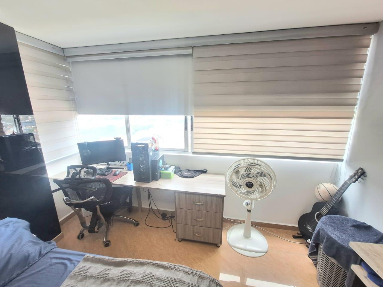 Upon entering, you'll find a spacious living and dining room. To the right of the entrance are balconies with fabulous views. Also to the right is the fully equipped kitchen with a breakfast bar, and behind it, the laundry area with a water heater and space for a washing machine. Before going downstairs, there's a guest bathroom without a shower. Downstairs, there's a study area, three bedrooms with closets, including the master bedroom, which features a walk-in closet and a large window with a balcony-style railing. The apartment has been remodeled, including the floors, bathrooms, closets, lighting, and tiling. The residential complex offers a complete social area with a gym, swimming pools, a jacuzzi, a BBQ area, a multi-sports court, a sauna, a children's playground, and 24-hour security. An additional parking space is available for an additional $25,000,000 COP.