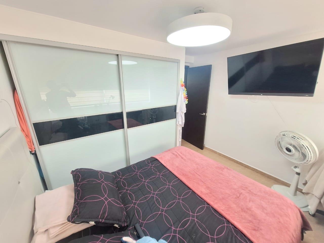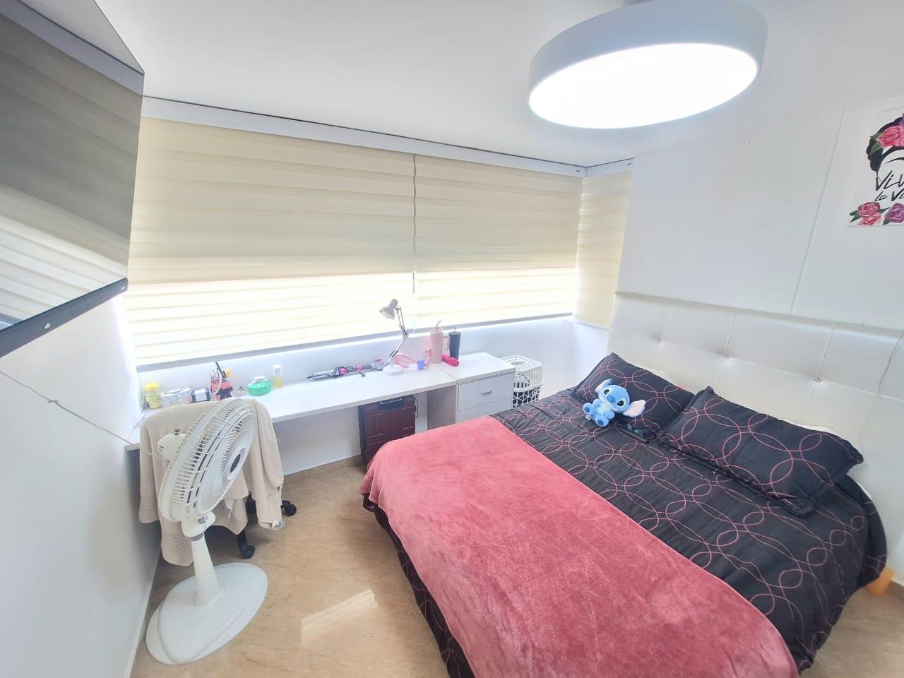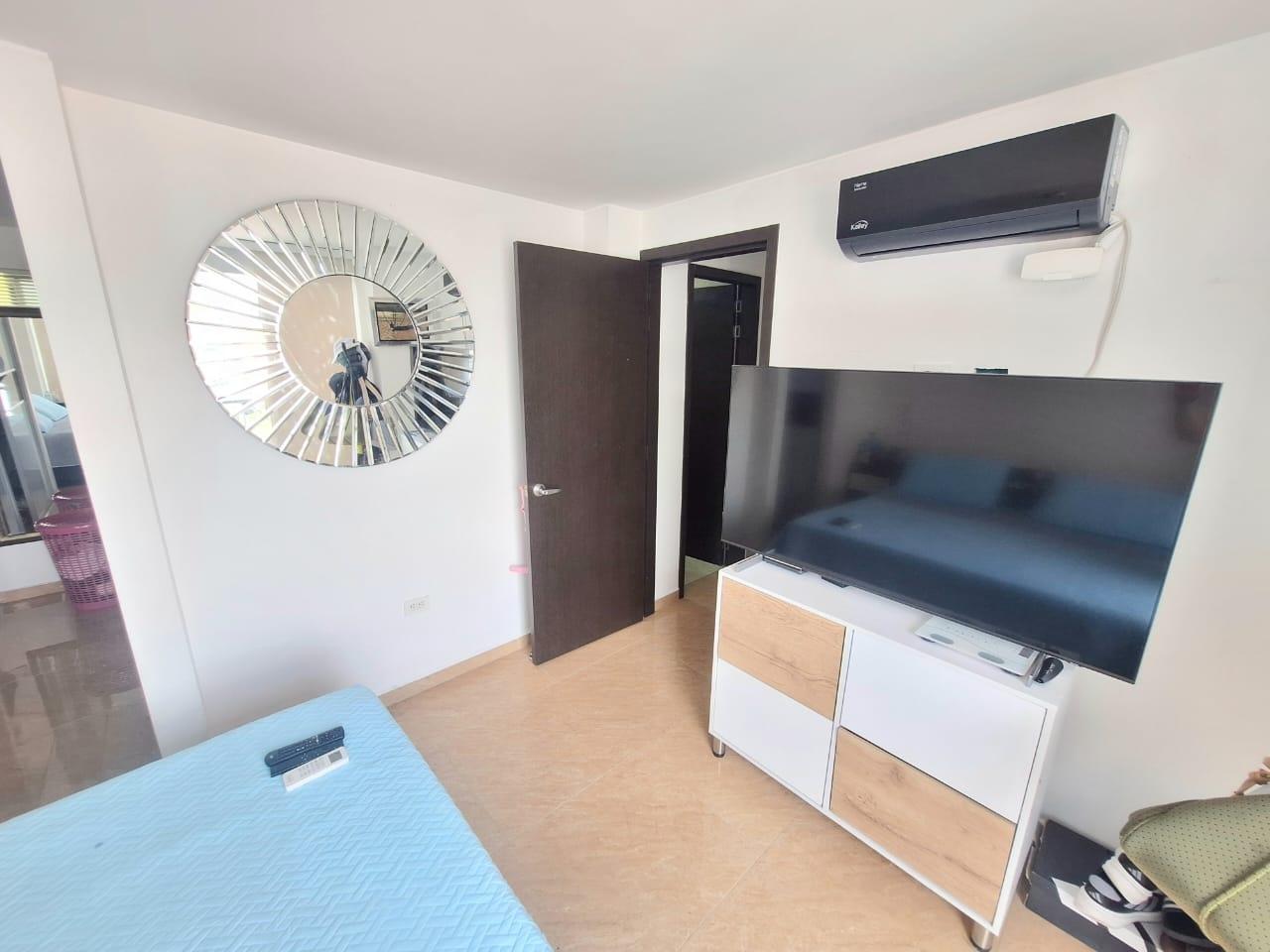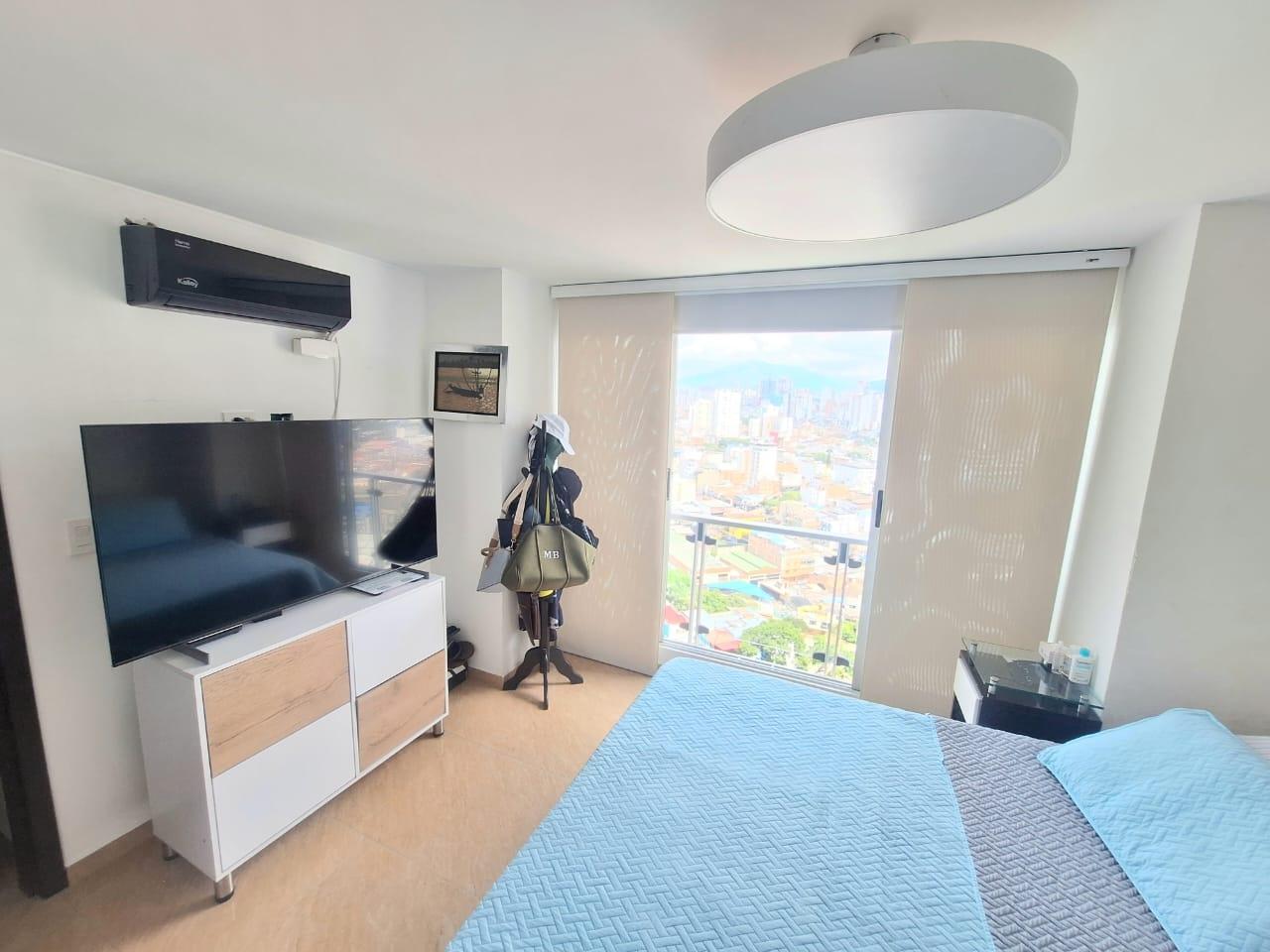 Upon entering, you'll find a spacious living and dining room. To the right of the entrance are balconies with fabulous views. Also to the right is the fully equipped kitchen with a breakfast bar, and behind it, the laundry area with a water heater and space for a washing machine. Before going downstairs, there's a guest bathroom without a shower. Downstairs, there's a study area, three bedrooms with closets, including the master bedroom, which features a walk-in closet and a large window with a balcony-style railing. The apartment has been remodeled, including the floors, bathrooms, closets, lighting, and tiling. The residential complex offers a complete social area with a gym, swimming pools, a jacuzzi, a BBQ area, a multi-sports court, a sauna, a children's playground, and 24-hour security. An additional parking space is available for an additional $25,000,000 COP.