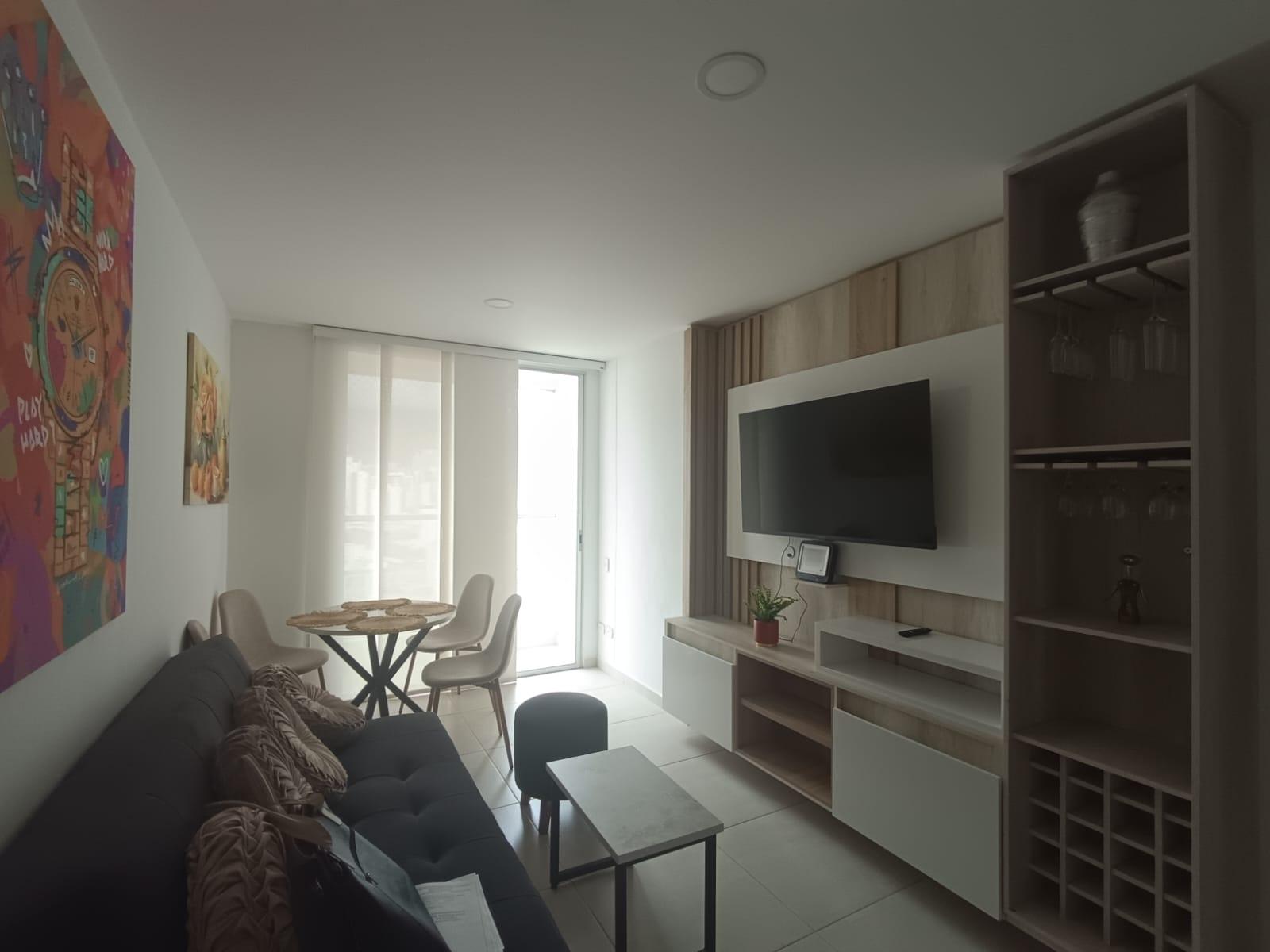 Furnished apartment for sale in the Bolivar neighborhood of Bucaramanga. This high-floor apartment, with an eastern view, is located in the Torre de la Vita building, in a prime location close to everything: transportation, shops, schools, and public offices. Ideal for those seeking comfort, easy access, and guaranteed appreciation. The 64.73 sq m (6,600 sq ft) apartment features a living/dining room, balcony, fully equipped kitchen and laundry area, three bedrooms with closets (one with an ensuite bathroom), and a guest bathroom. The property is being sold fully furnished, including living and dining room furniture, kitchen and laundry appliances, beds in all three bedrooms, and TV stands. Building amenities include a children's and adults' swimming pool, gym, BBQ area, covered sports court, social room, playground, three elevators, parking, and two storage units.