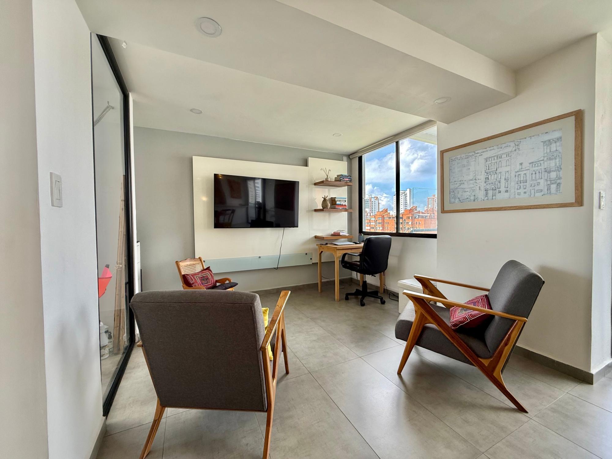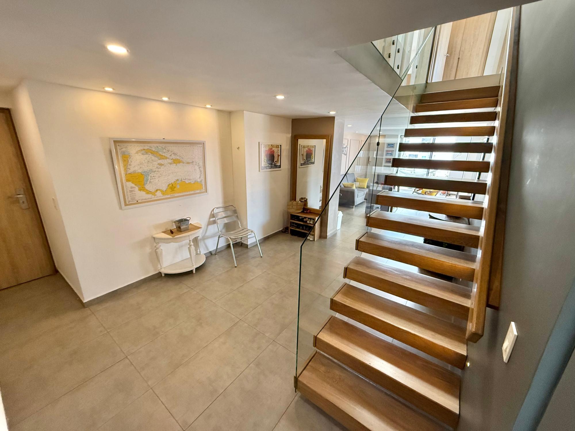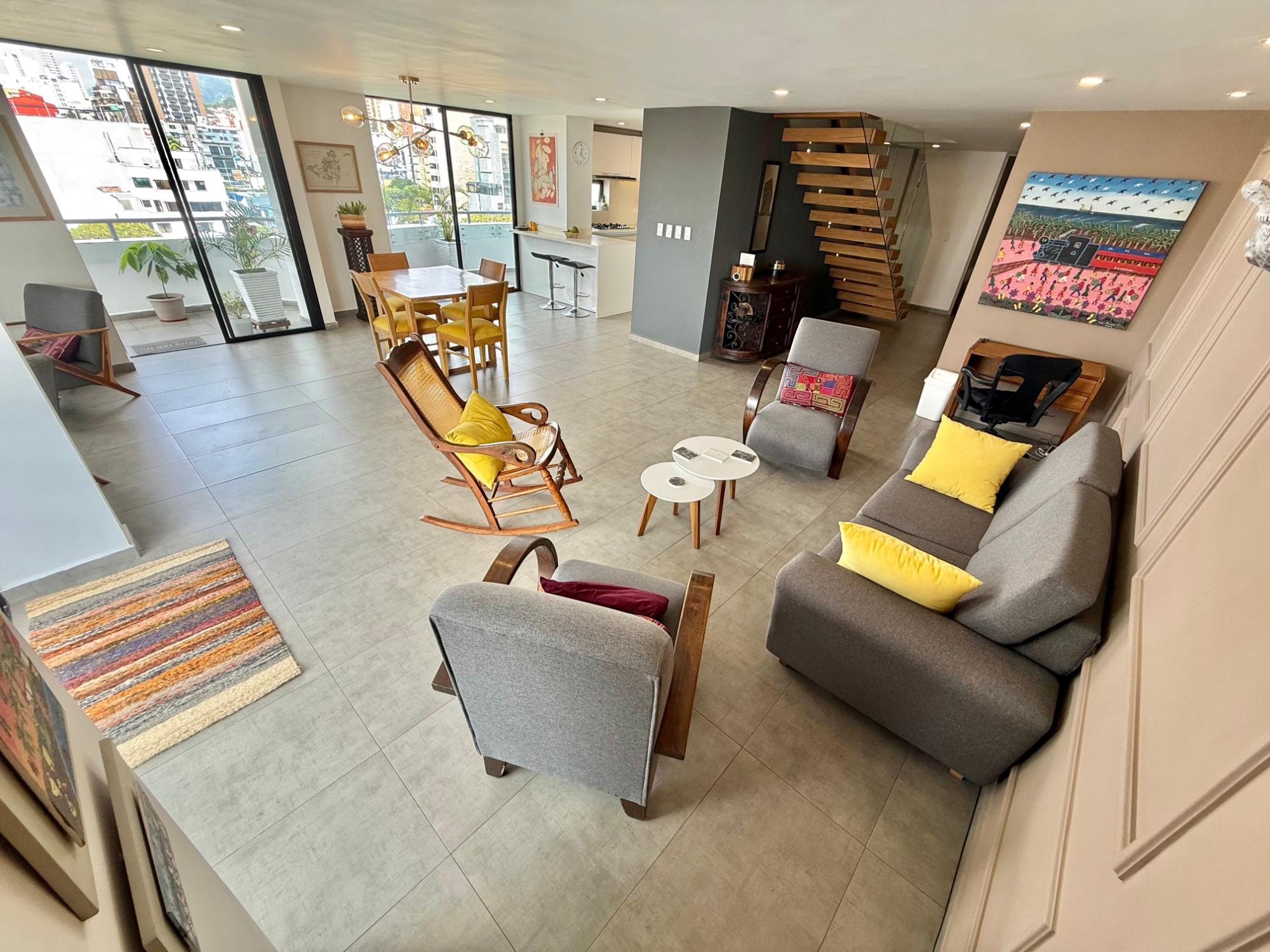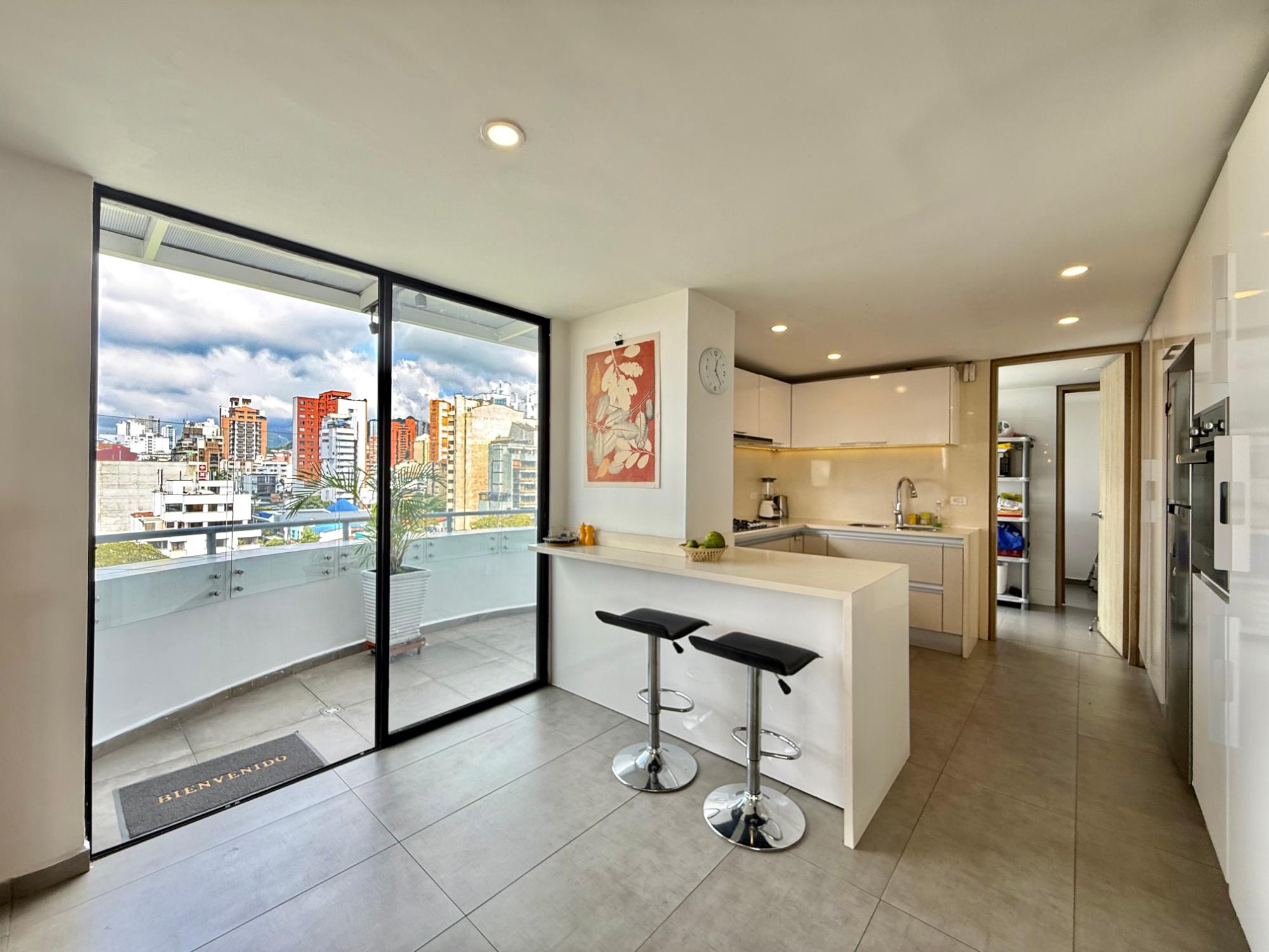 Remodeled duplex apartment next to San Pio Park, boasting the best walkability index in the city, located on the 11th floor with a privileged panoramic view of the city. It features a constructed area of 198.94 m², a private area of 170 m², and 28.52 m² distributed across balconies. First level: American-style kitchen integrated with the living-dining room, TV room, guest bathroom, laundry area, and maid's quarters with private bathroom. Second level: master bedroom with private bathroom, walk-in closet, and private terrace; two additional bedrooms that share a bathroom; and an extra space ideal for a study. The property also includes three parking spaces and a storage unit, providing added convenience and functionality.