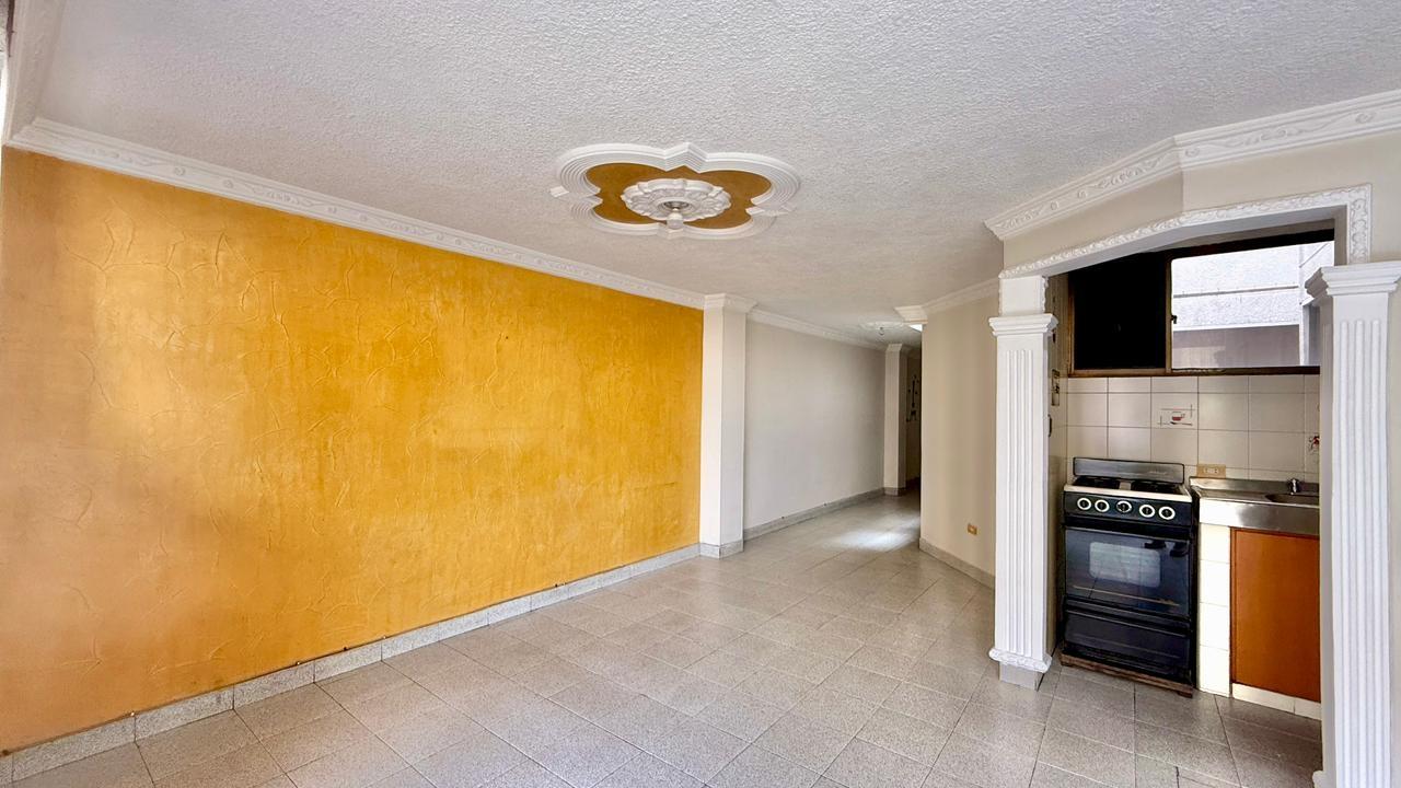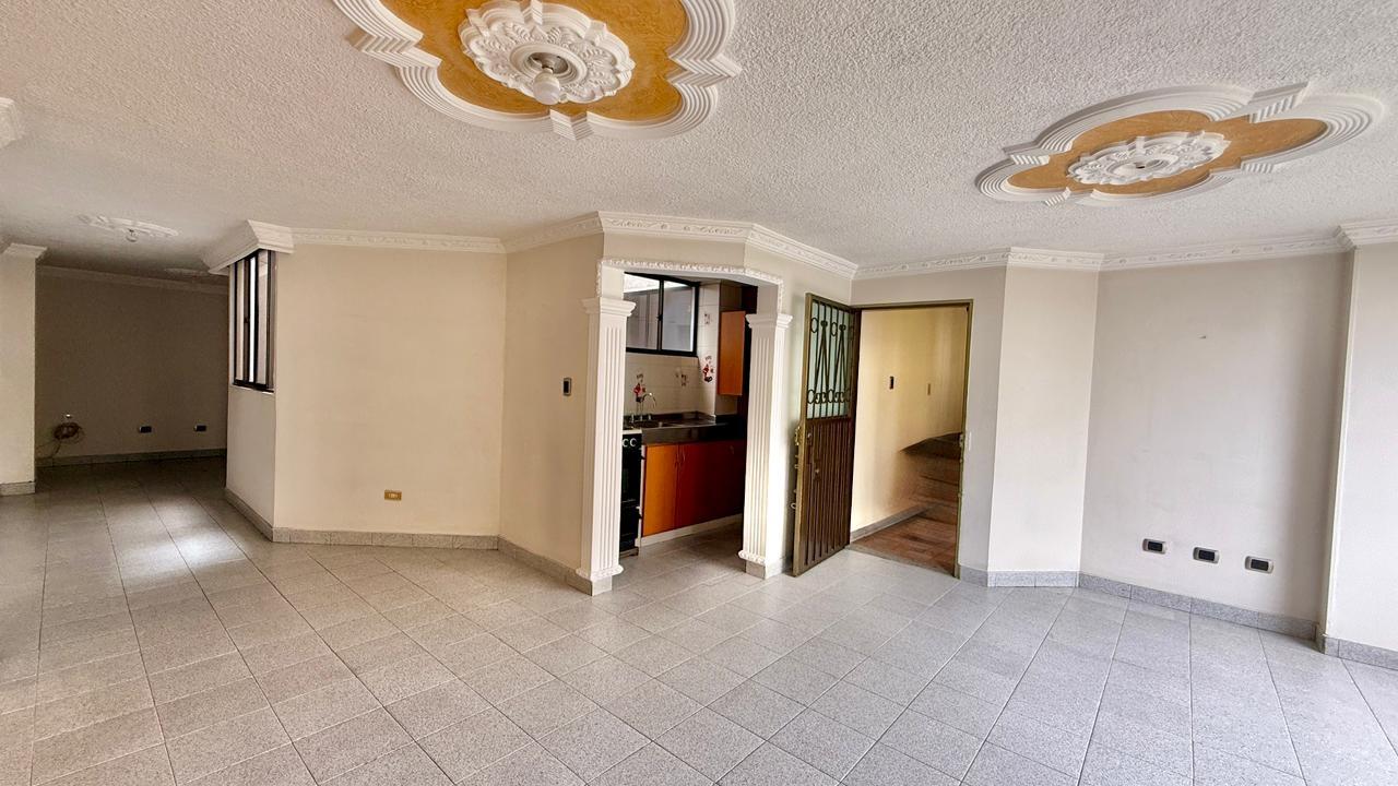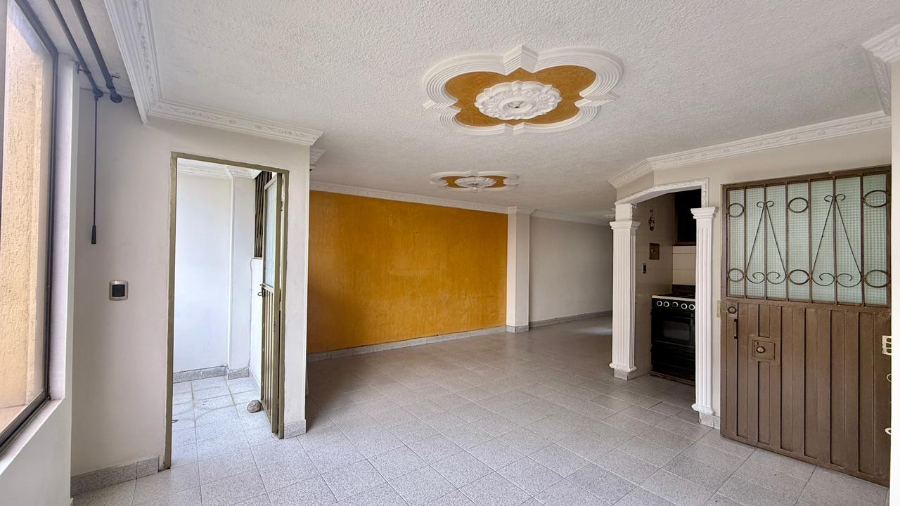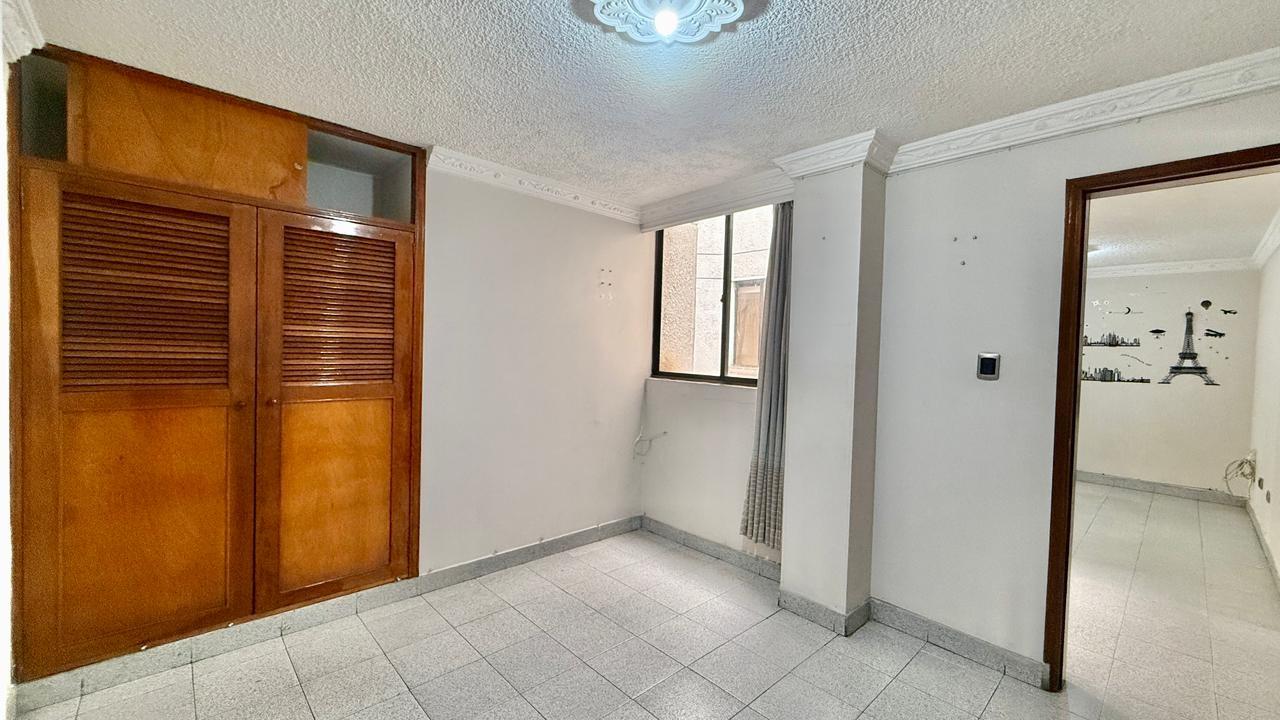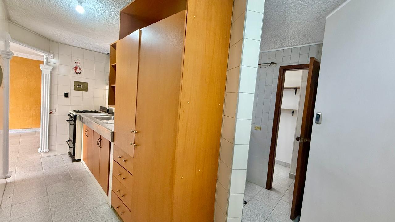 Apartamento de 98,70 metros, distribuidos asi: sala-comedor, balcon, cocina integral, zona de ropas, habitacion de servicio con baño privado, estudio, habitacion principal con baño privado, dos habitaciones auxiliares y un baño auxiliar, es un tercer piso sin ascensor y sin parqueadero.