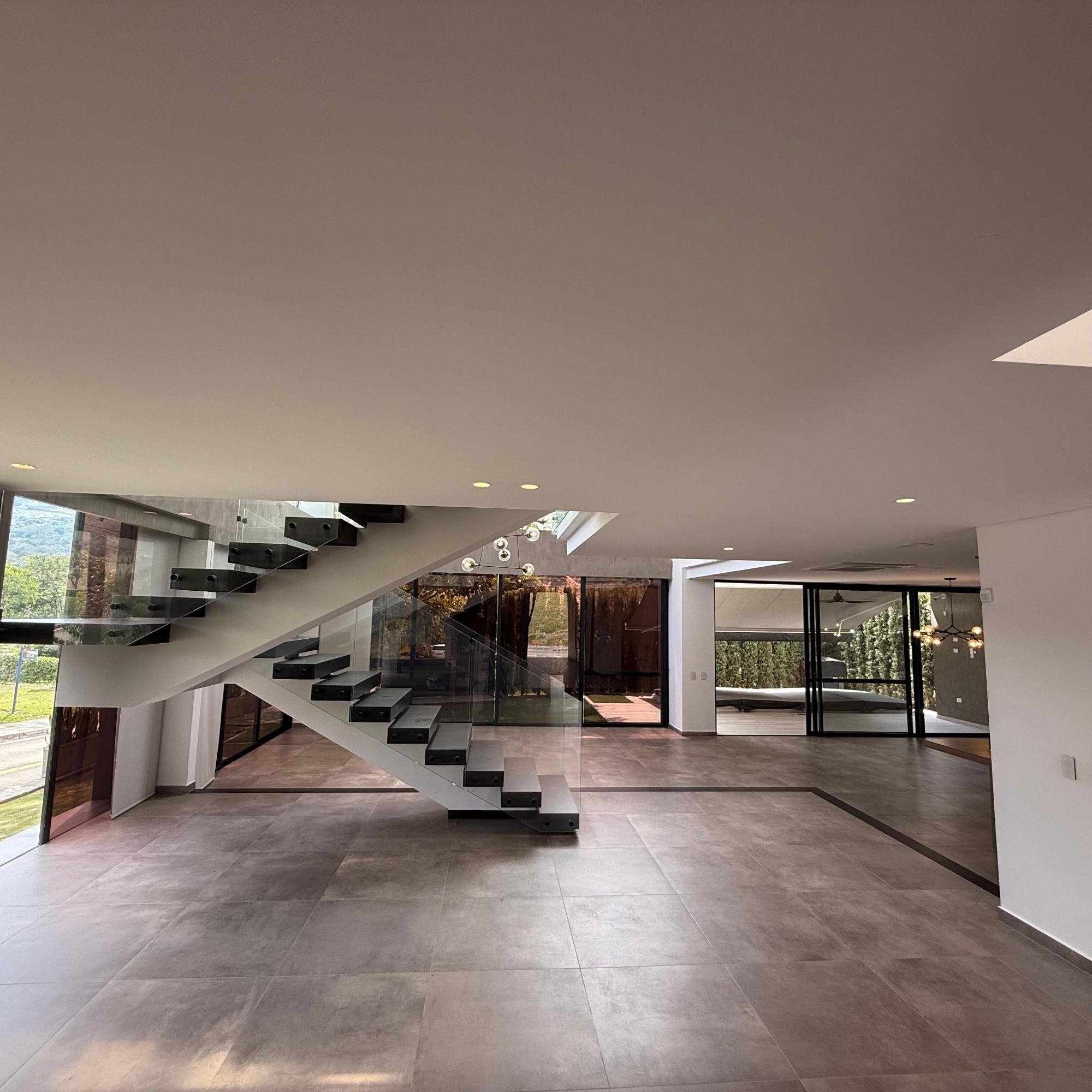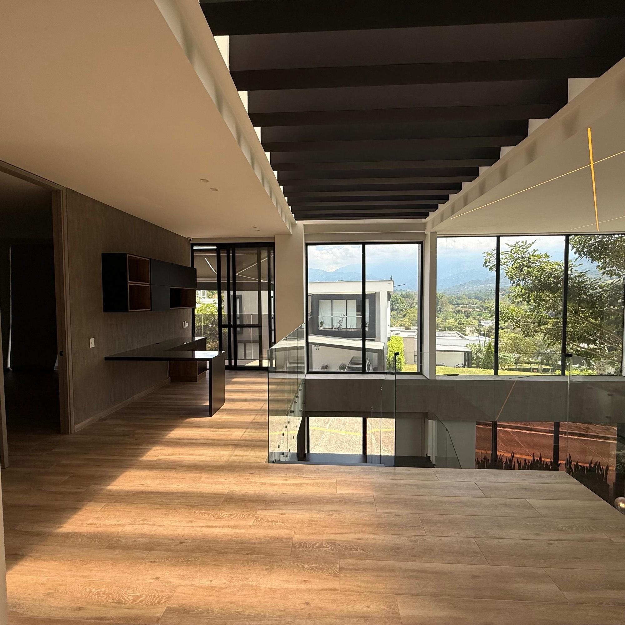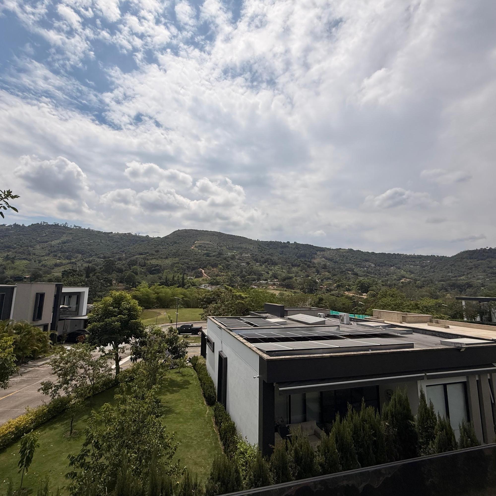 Exclusive Luxury Residence overlooking the Ruitoque Mountains, where contemporary design, spaciousness, and nature blend in perfect harmony. This impressive home, approximately 500 m² in size, embodies comfort and elegance in one of the most sought-after areas. From the moment you step inside, the residence impresses with its spacious, open-plan layout and double-height ceilings. It features a fully equipped, high-end island kitchen measuring 5 meters, and a large living room that opens onto the terrace, pool, and garden. The property boasts four master bedrooms, each with a private bathroom, walk-in closet, terrace, and air conditioning. It also includes a Turkish bath with a capacity for 12 people. Furthermore, it incorporates sustainable solutions such as solar panels and a 10,000-liter underground rainwater harvesting tank.