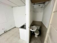Upon entering the house, a hallway leads to the living room. Further along the hallway are three bedrooms without closets, the master bedroom having an en-suite bathroom. There is also a second bathroom in the hallway, as well as a living/dining room and a traditional kitchen. Next to the kitchen is the laundry area, located at the back of the house. On either side of the main entrance are two commercial spaces, each approximately 20 square meters, and both have their own bathrooms. The house has tiled floors.