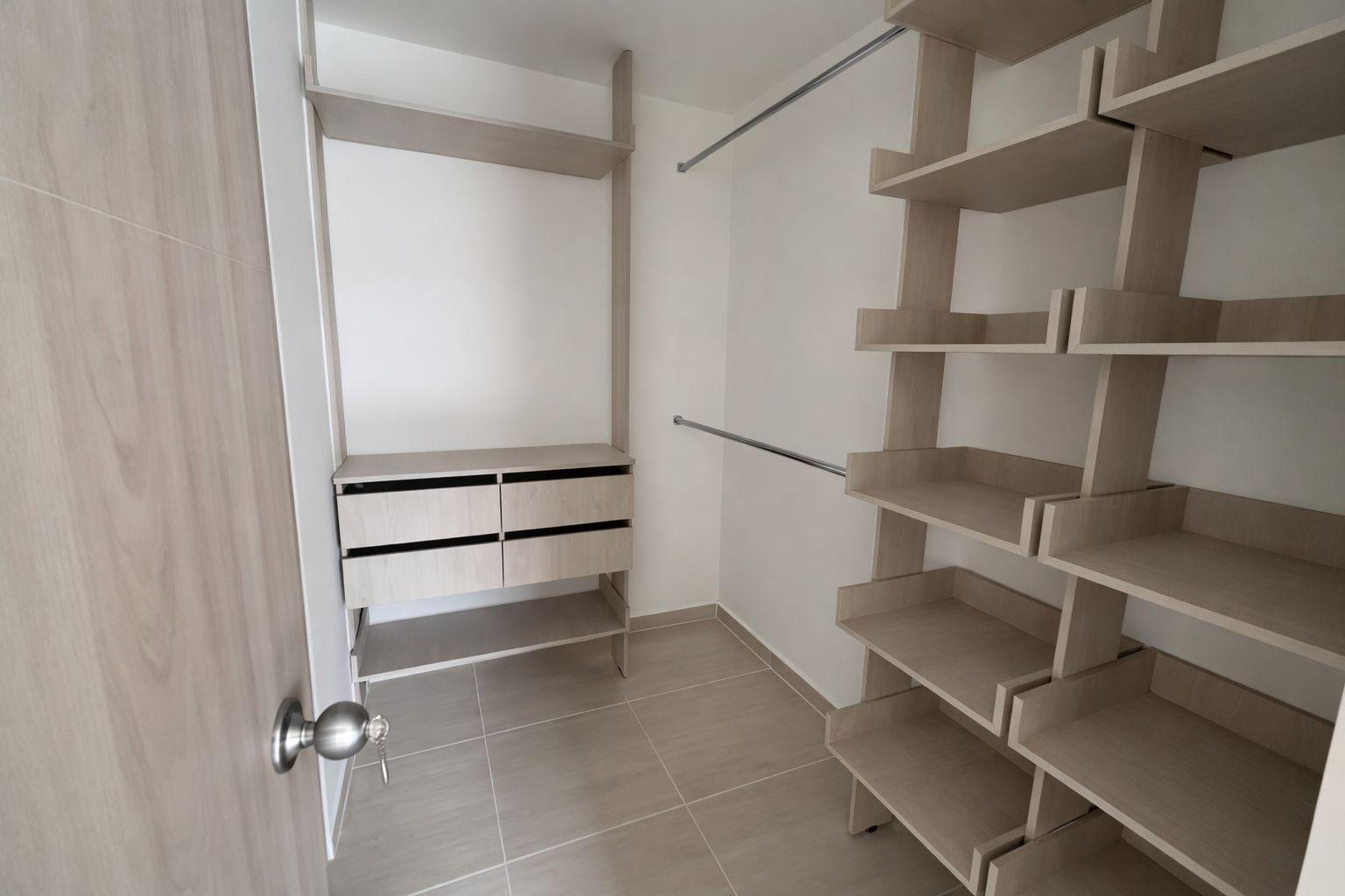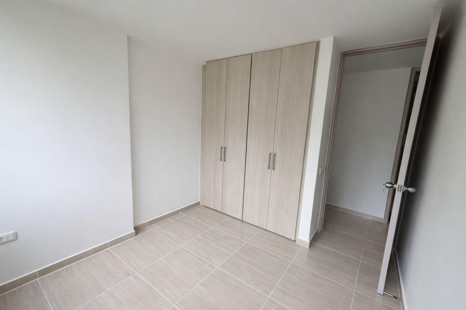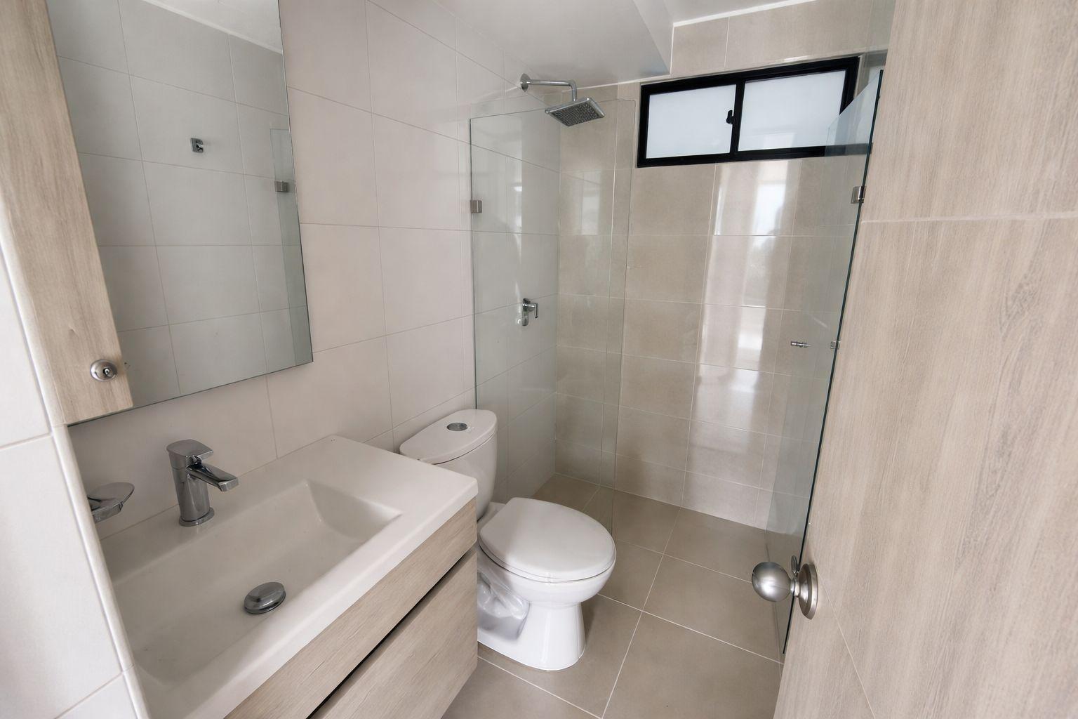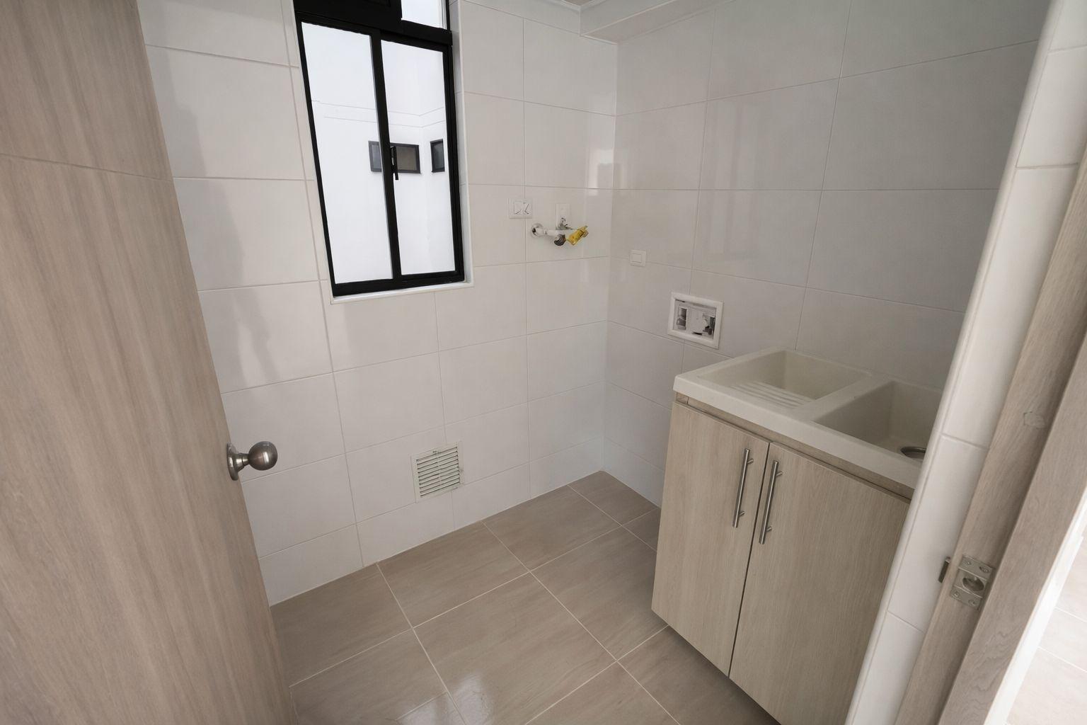 Apartment for sale in Piedecuesta, Bosques del Hato residential complex, Phase 2. It features a fully equipped kitchen with a marble breakfast bar, a living/dining room with a balcony overlooking the pool, a master bedroom with closets and an ensuite bathroom, two additional bedrooms with closets, a shared bathroom, and a laundry area. The complex offers a complete social area with 24/7 security, a swimming pool, a children's playground, a social room for meetings, two assigned parking spaces, and an elevator. Available for investment.
