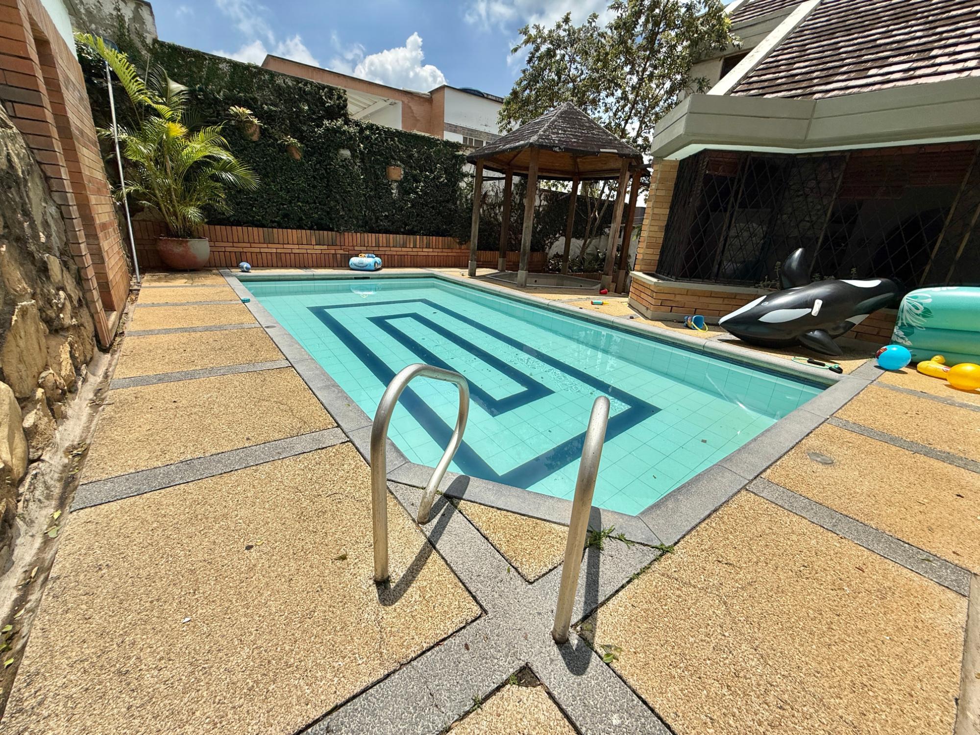 THIS HOUSE HAS (4) BEDROOMS AND (1) SERVICE BEDROOM, (3) OF THEM WITH PRIVATE BATHROOM AND CLOSET, (3) LIVING ROOMS, (1) STUDY, DINING ROOM, INTEGRAL KITCHEN, BBQ AREA, POOL, JACUZZI, DOUBLE COVERED GARAGE, WOOD FLOORS, LAMINATE CERAMIC.
