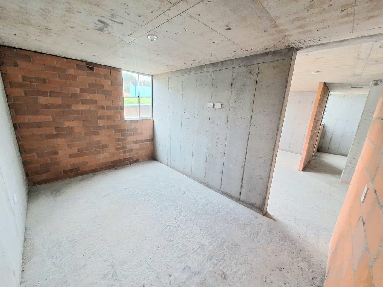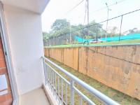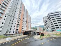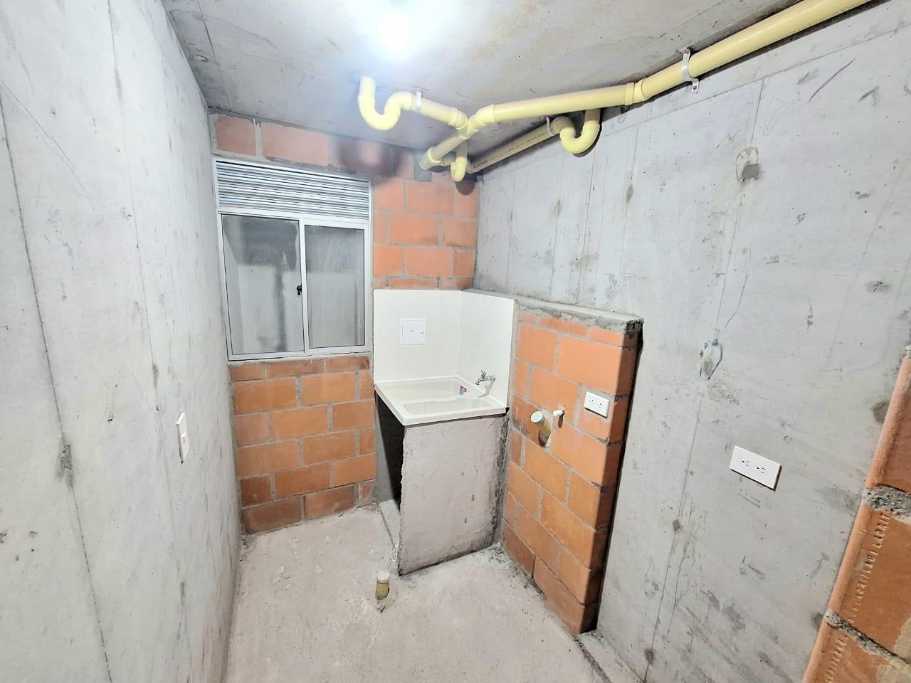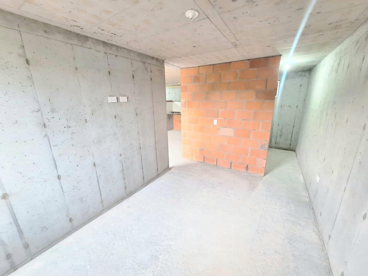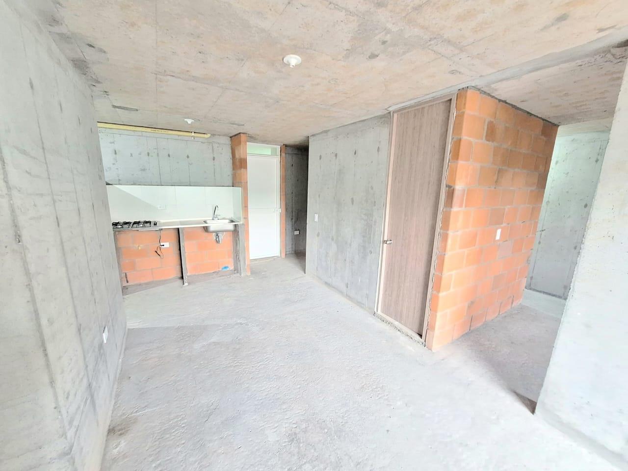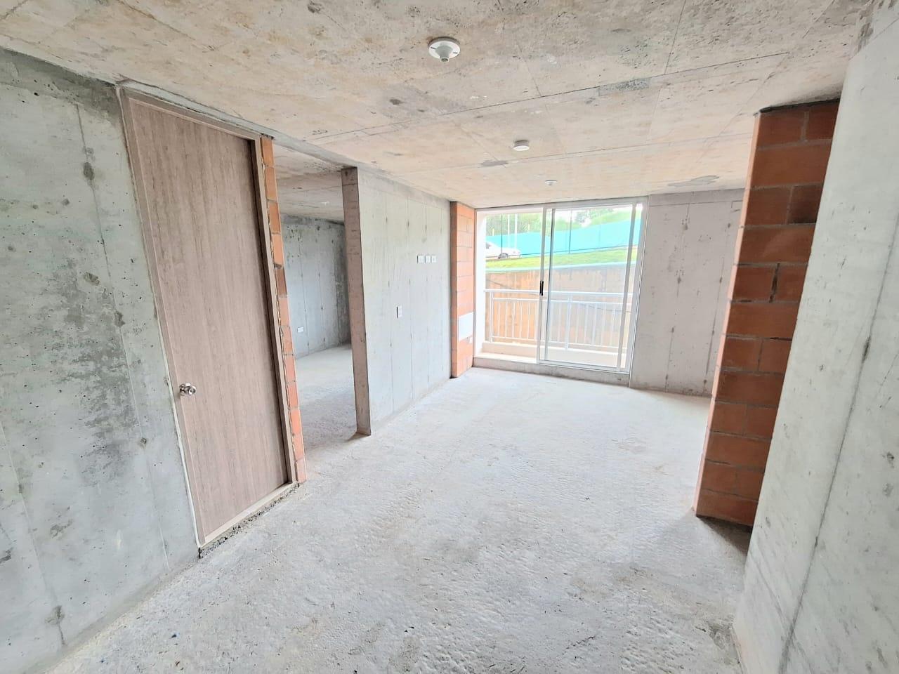 This unfinished apartment is ideal for personal customization. Upon entering, to the left, there is a small study area. To the right is the kitchen, followed by the laundry area. Directly across from the entrance is the living/dining room and a balcony with an exterior view. To the right of the living room is a bedroom without a door. Next to it is a TV room that could also be converted into a bedroom. To the left of the living room is a guest bathroom with a shower and a door. Next to the guest bathroom is the master bedroom with an en-suite bathroom and shower. The other two bathrooms are currently without doors. The complex will feature communal parking, a swimming pool, a children's playground, a social hall, a multi-sports court, and 24-hour security.