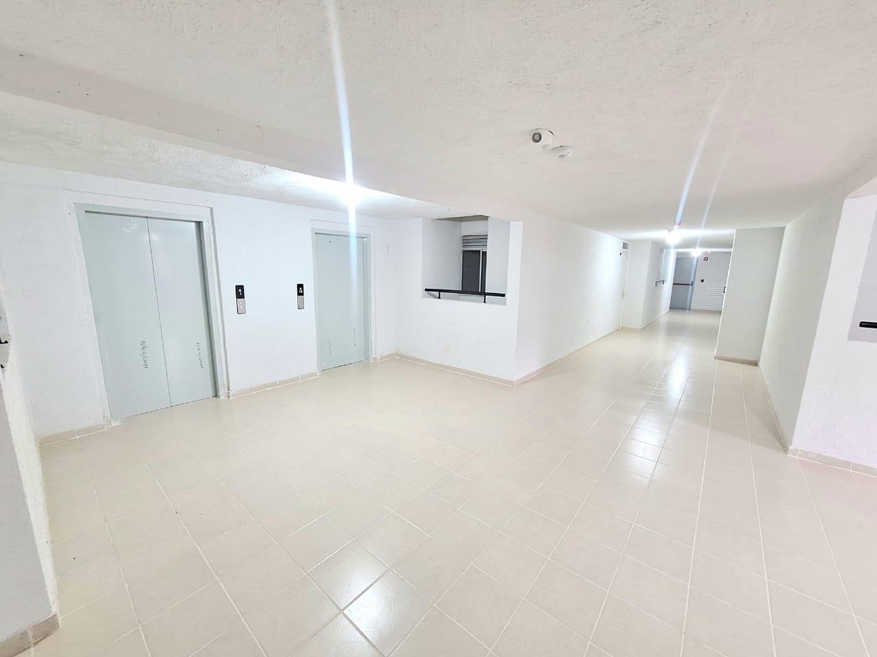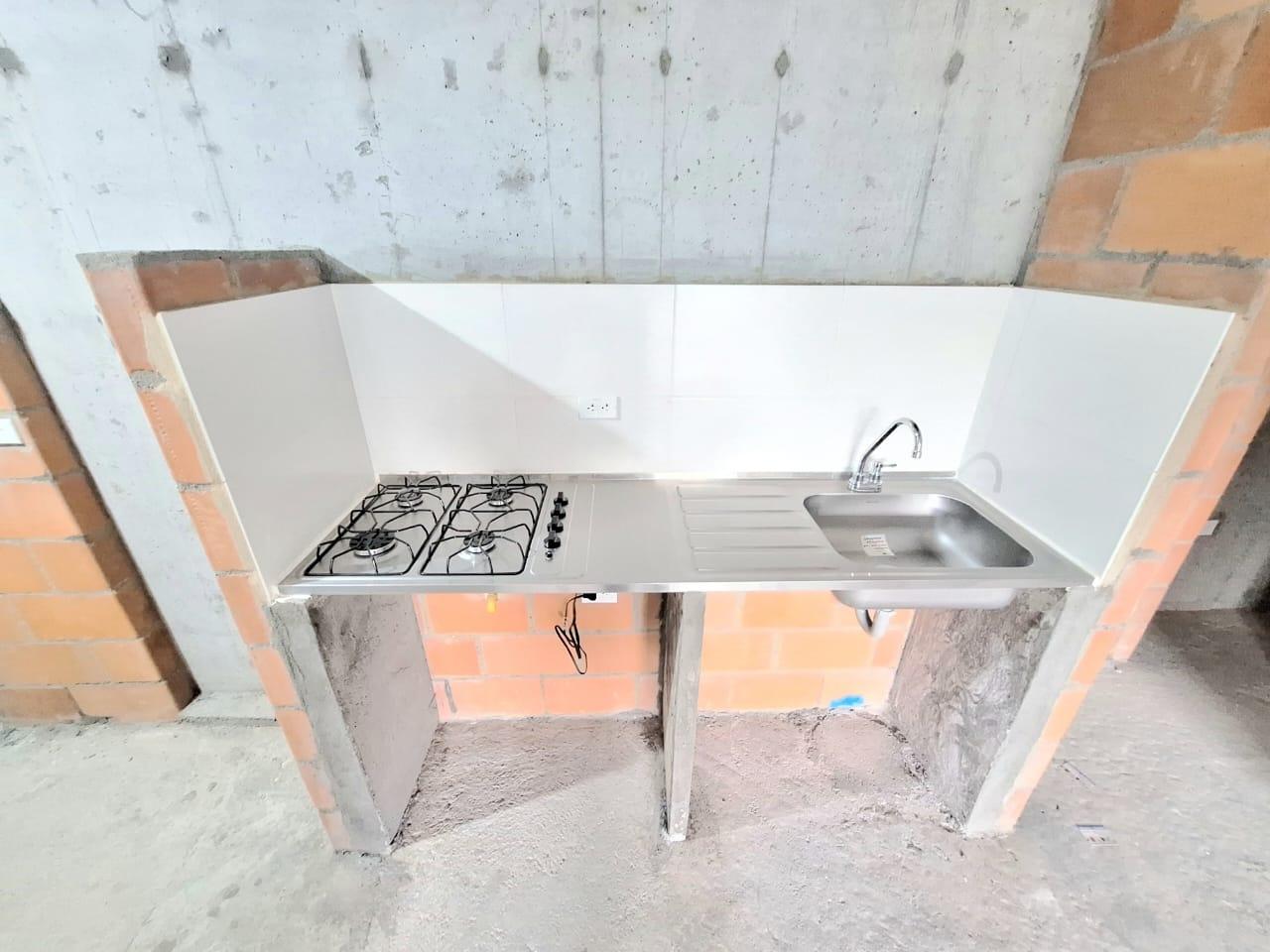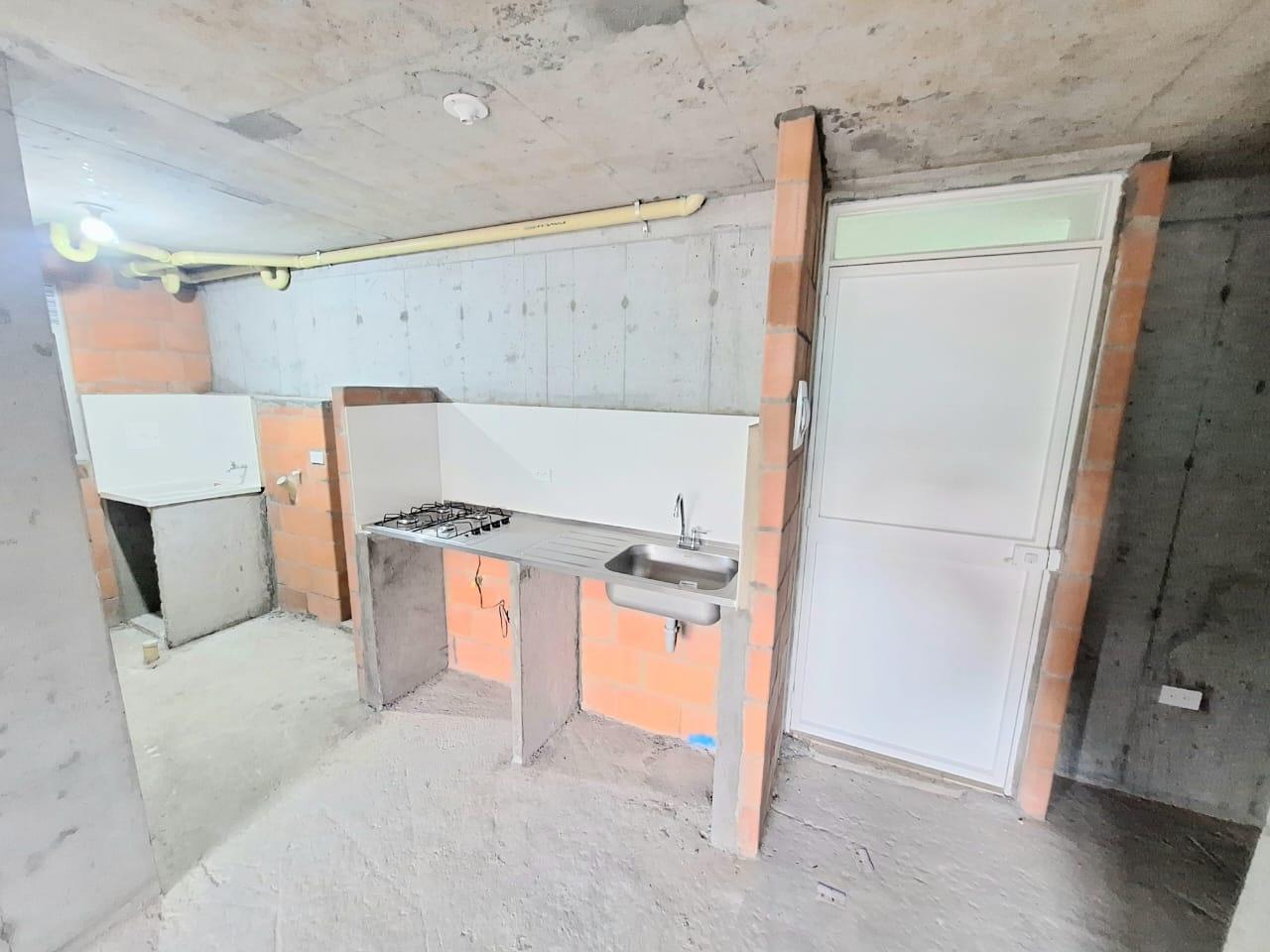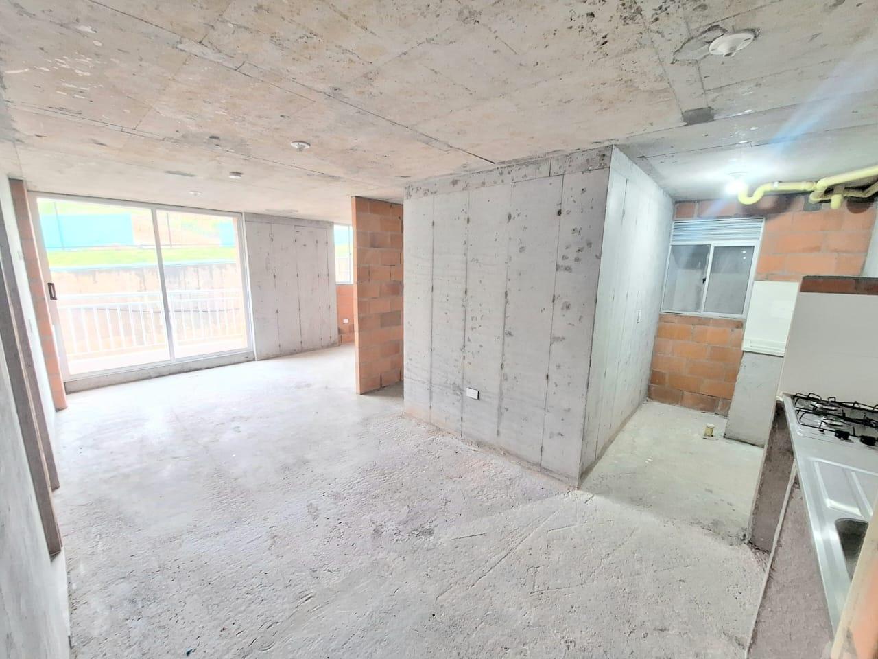 This unfinished apartment is ideal for personal customization. Upon entering, to the left, there is a small study area. To the right is the kitchen, followed by the laundry area. Directly across from the entrance is the living/dining room and a balcony with an exterior view. To the right of the living room is a bedroom without a door. Next to it is a TV room that could also be converted into a bedroom. To the left of the living room is a guest bathroom with a shower and a door. Next to the guest bathroom is the master bedroom with an en-suite bathroom and shower. The other two bathrooms are currently without doors. The complex will feature communal parking, a swimming pool, a children's playground, a social hall, a multi-sports court, and 24-hour security.