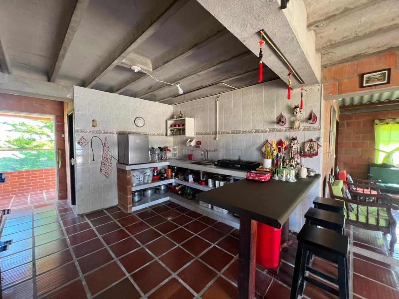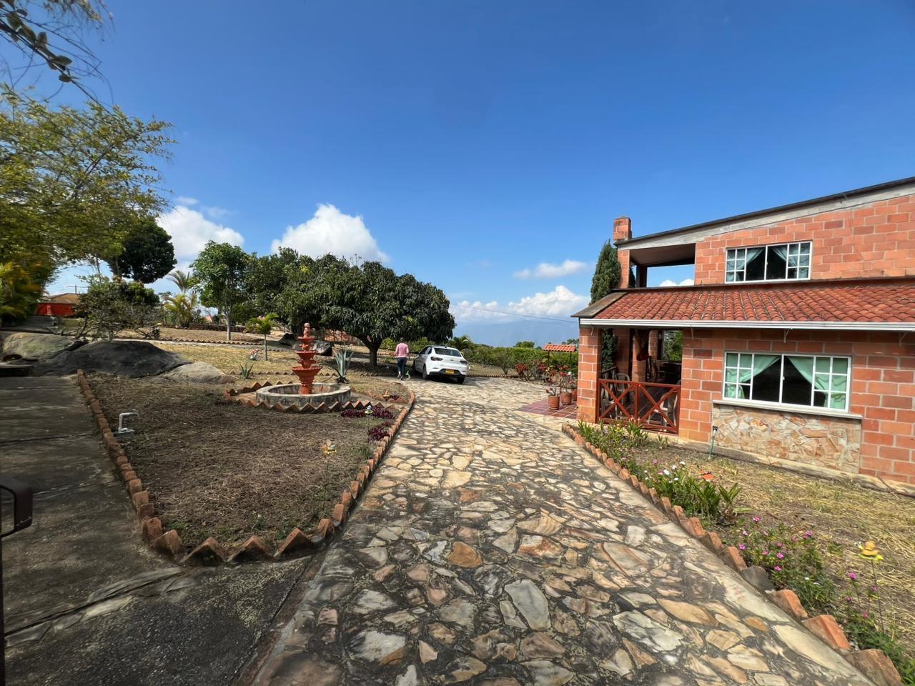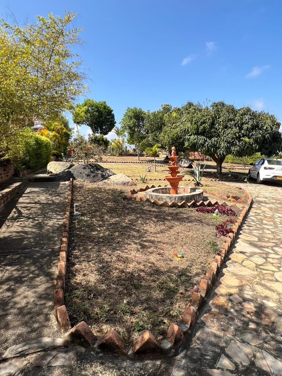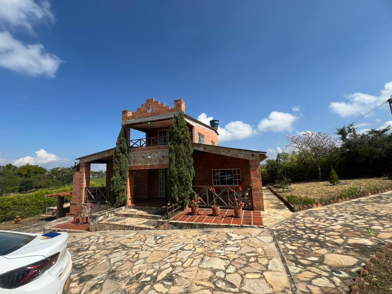 Country house with lot and beautiful views – Mesa de los Santos. Beautiful two-story country house with lot and fruit trees – Mesa de los Santos. Beautiful two-story country house in Mesa de los Santos, surrounded by nature and with ample green areas. It has a living-dining room, kitchen, two additional bedrooms, a guest bathroom, and a covered garage. It also features a basement with a bathroom, BBQ area, tool shed, decorative fountain, gardens, an overhead water tank, and a storage tank for potable or rainwater for plant irrigation. On the second floor, there is a TV room or office, a master bedroom with a private bathroom, and a large balcony with beautiful views of the landscape. The lot has fruit trees and ideal spaces for relaxation and recreation. Located 10 minutes from the main road and 15 minutes from the Farmers Market.